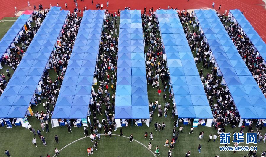 這是10月28日拍攝的上海市2021屆高校畢業(yè)生秋季校園招聘會(huì)現(xiàn)場(chǎng)(無人機(jī)照片)。新華社記者 劉穎 攝