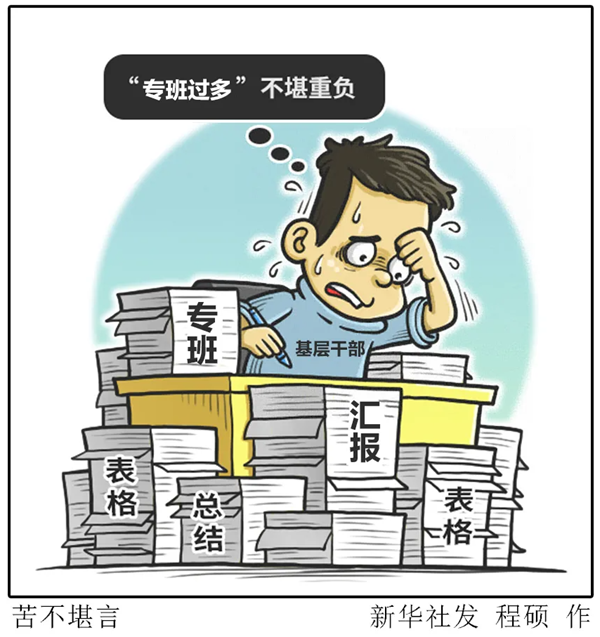 “一些專班還要求參與單位明確具體參與人員是誰,各自分工是什么。看起來井井有條,實(shí)際工作卻是為了應(yīng)付有關(guān)要求而準(zhǔn)備各種書面材料,從‘紙上來’到‘紙上去’,沒有推動(dòng)實(shí)際工作,但增加了工作負(fù)擔(dān)?!敝胁磕晨h一名副局長直言。