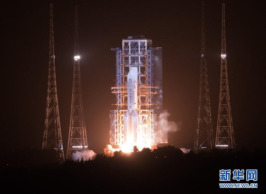 11月24日4時30分,我國在中國文昌航天發射場,用長征五號遙五運載火箭成功發射探月工程嫦娥五號探測器,火箭飛行約2200秒后,順利將探測器送入預定軌道,開啟我國首次地外天體采樣返回之旅。這是長征五號遙五運載火箭發射。新華社記者金立旺攝