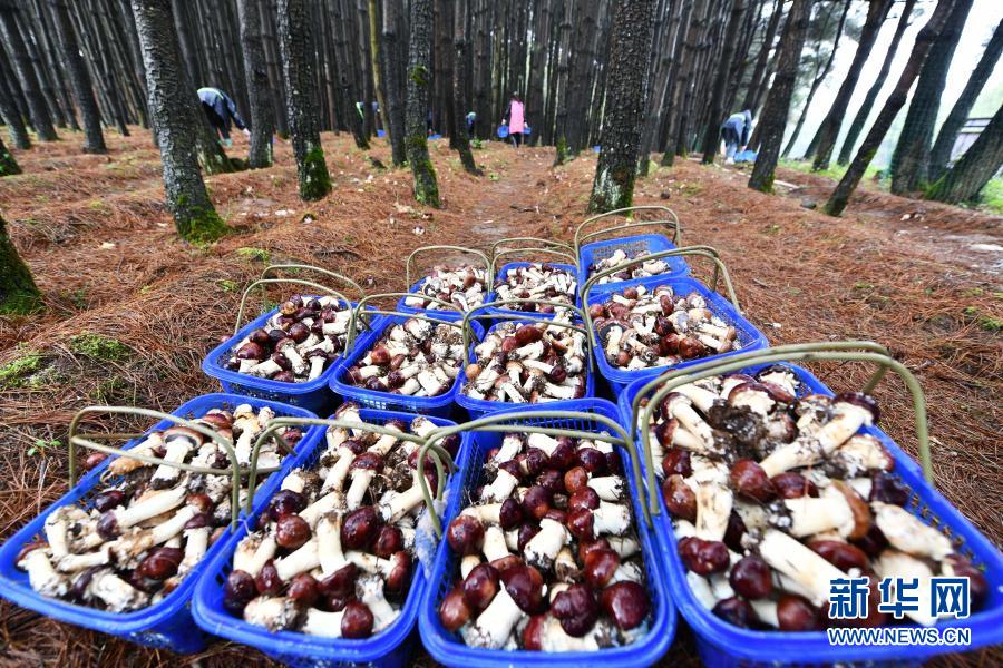 這是村民在貴州省威寧縣觀風(fēng)海鎮(zhèn)沙子坡林場(chǎng)采摘的林下食用菌(6月18日攝)。新華社記者 楊文斌 攝