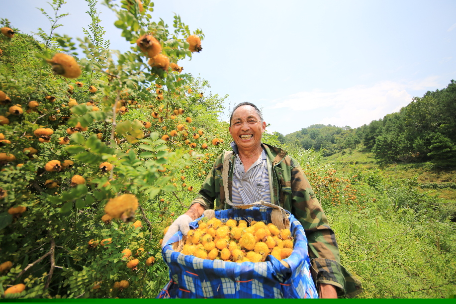 ????刺梨產業正成為群眾增收致富的好幫手,圖為貴州省黔南州貴定縣昌明鎮火炬村村民喜迎刺梨豐收,臉上掛滿豐收的喜悅。石銀超 攝