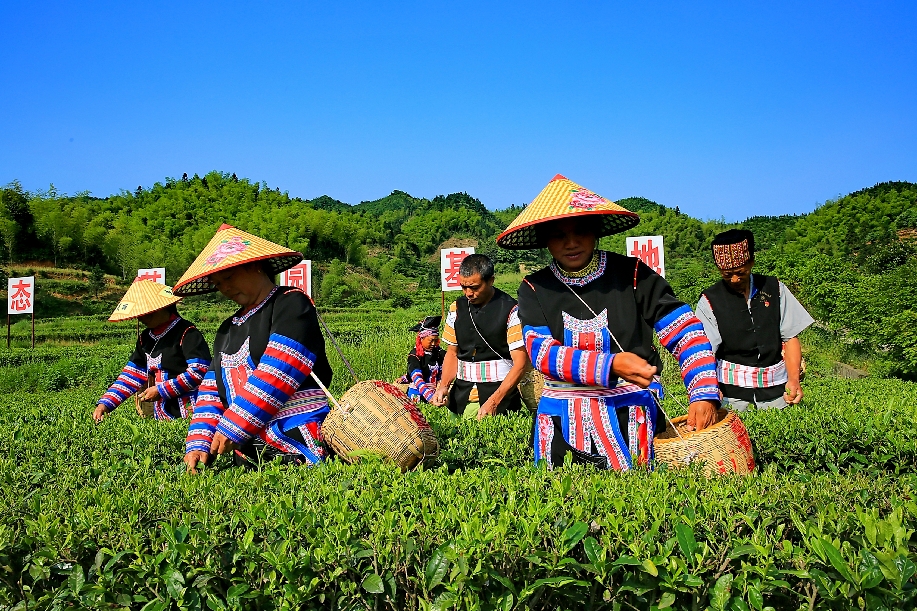 ????一群貧困戶正在采摘茶葉 郭興成 攝