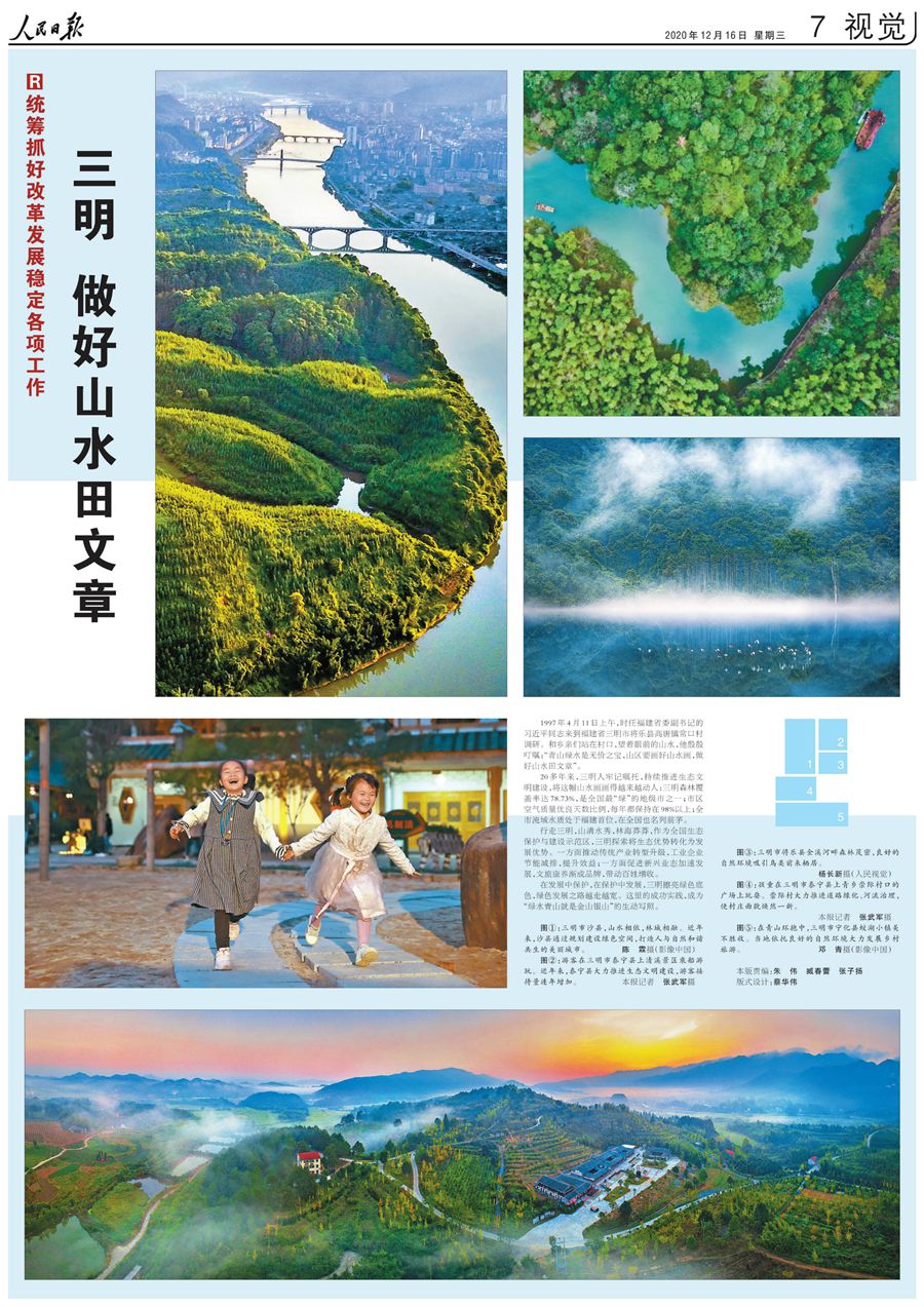 福建省三明市統籌推進“五位一體”總體布局、協調推進“四個全面”戰略布局,以全面貫徹落實新發展理念的生動實踐,展現了機制活、產業優、百姓富、生態美的生動畫卷,對于各地更好貫徹新發展理念、推動高質量發展具有重要啟示意義。今天人民日報推出多篇報道,刊發評論員文章,聚焦三明的探索和實踐。