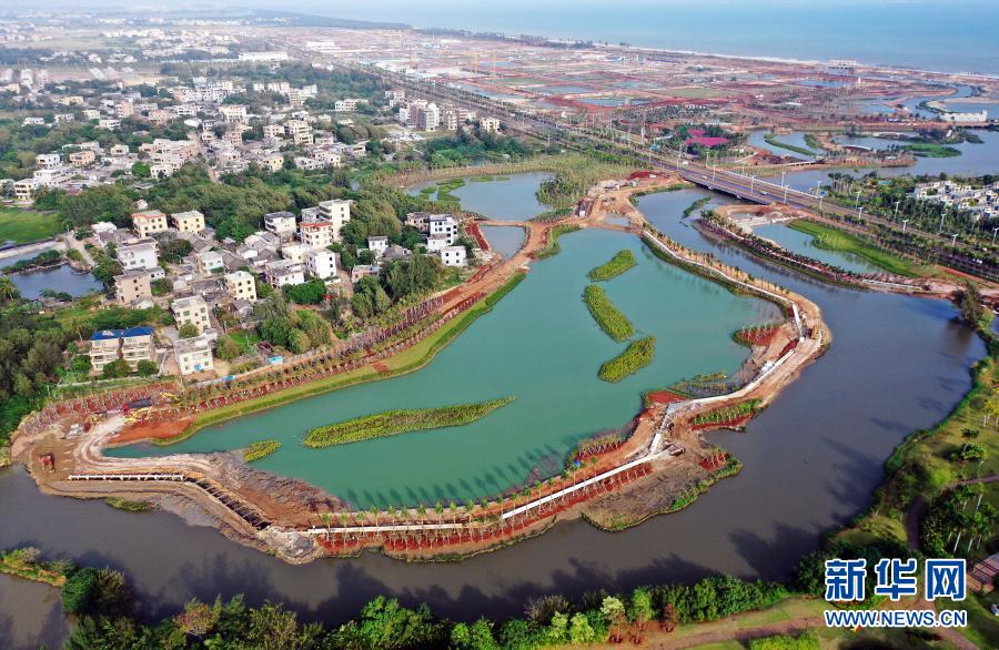 這是??谑薪瓥|新區芙蓉河綜合治理工程(11月6日攝,無人機照片)。新華社記者 郭程 攝
