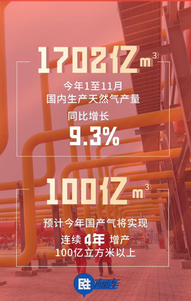 一是國內生產穩定。今年1至11月,國內生產天然氣1702億立方米,比去年同期增長9.3%,預計今年國產氣將實現連續4年增產100億立方米以上,這為穩定供氣奠定扎實基礎。