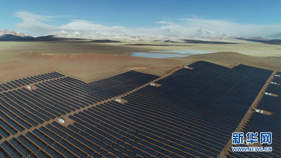 這是2019年1月31日在西藏那曲市雙湖縣拍攝的太陽能發電站(無人機照片)。新華社記者 普布扎西 攝