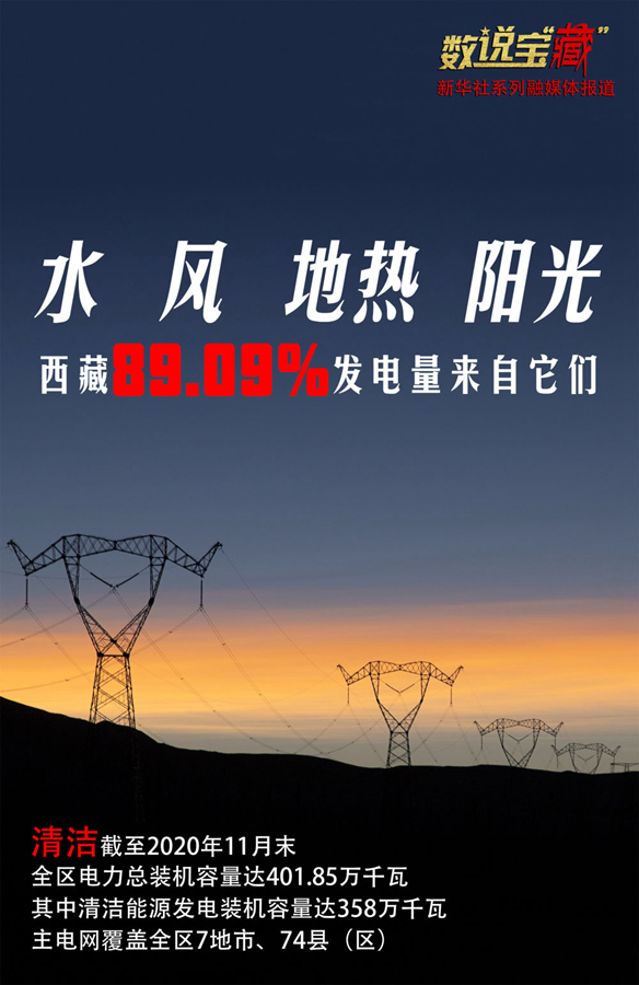 西藏自治區發展改革委的數據顯示,近年來西藏發電能力大幅增長,截至2020年11月末,全區電力總裝機容量達401.85萬千瓦,其中清潔能源板塊增長迅速,同期水電、風電、地熱以及太陽能光伏發電裝機容量達358萬千瓦,清潔能源在發電裝機容量中的占比達89.09%。