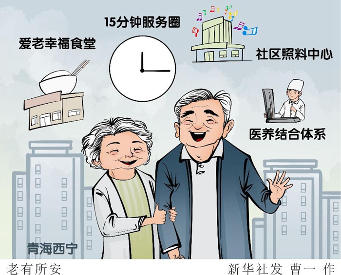 垂暮不離親,養(yǎng)老不離家。青藏高原最大城市——青海省西寧市充分利用社區(qū)、農(nóng)村現(xiàn)有資源,普及建設(shè)愛老幸福食堂、社區(qū)照料中心、醫(yī)養(yǎng)結(jié)合體系,打造“15分鐘服務(wù)圈”,實(shí)現(xiàn)居家“老有所養(yǎng)、老有所安”。
