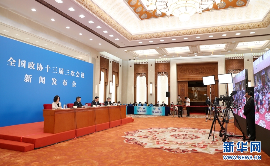 5月20日,全國政協十三屆三次會議新聞發布會在北京舉行,大會新聞發言人郭衛民介紹本次大會有關情況并回答中外記者提問。圖為人民大會堂新聞發布廳現場。新華網 王翰林 攝