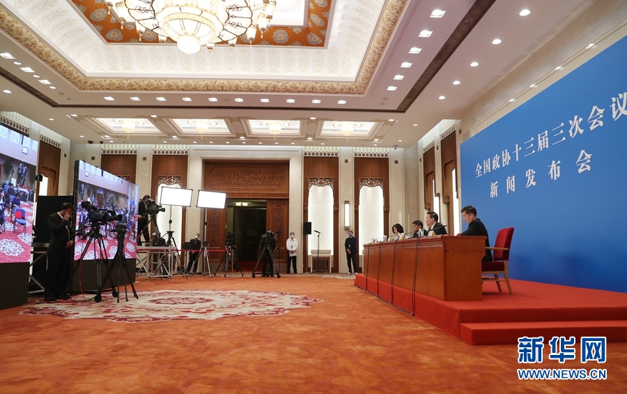 5月20日,全國政協十三屆三次會議召開新聞發布會。大會新聞發言人郭衛民向中外媒體介紹本次大會有關情況并回答記者提問。圖為新聞發布會現場。新華網記者 王翰林 攝
