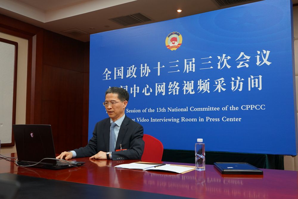 全國政協委員、民革中央委員徐景坤20日在豐大國際酒店駐地接受媒體記者網絡采訪。