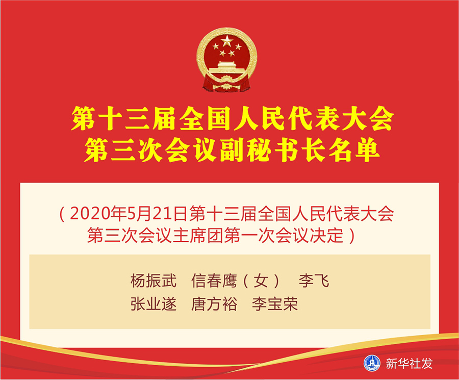 第十三屆全國人民代表大會第三次會議副秘書長名單