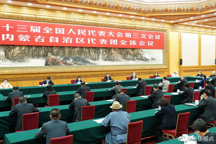 全國人大代表、錫林郭勒盟盟長霍照良告訴總書記,他們堅持生態優先、綠色發展,將全盟60%以上區域劃入生態保護紅線,不再在草原新上礦山開發項目。習近平表示肯定:“留在那,子孫后代可以用。”(文字記者張曉松、朱基釵 攝影記者:鞠鵬、黃敬文、謝環馳)