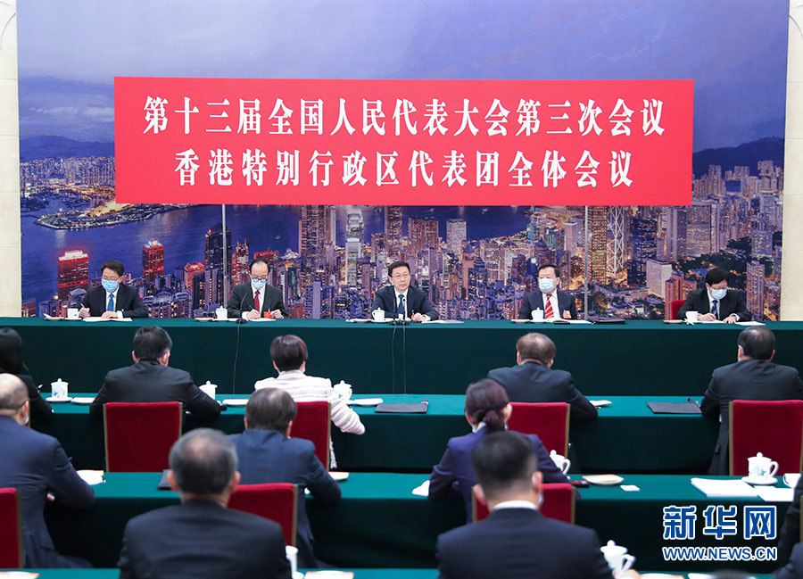 5月24日,中共中央政治局常委、國務院副總理韓正參加十三屆全國人大三次會議香港代表團的審議。 新華社記者 姚大偉 攝