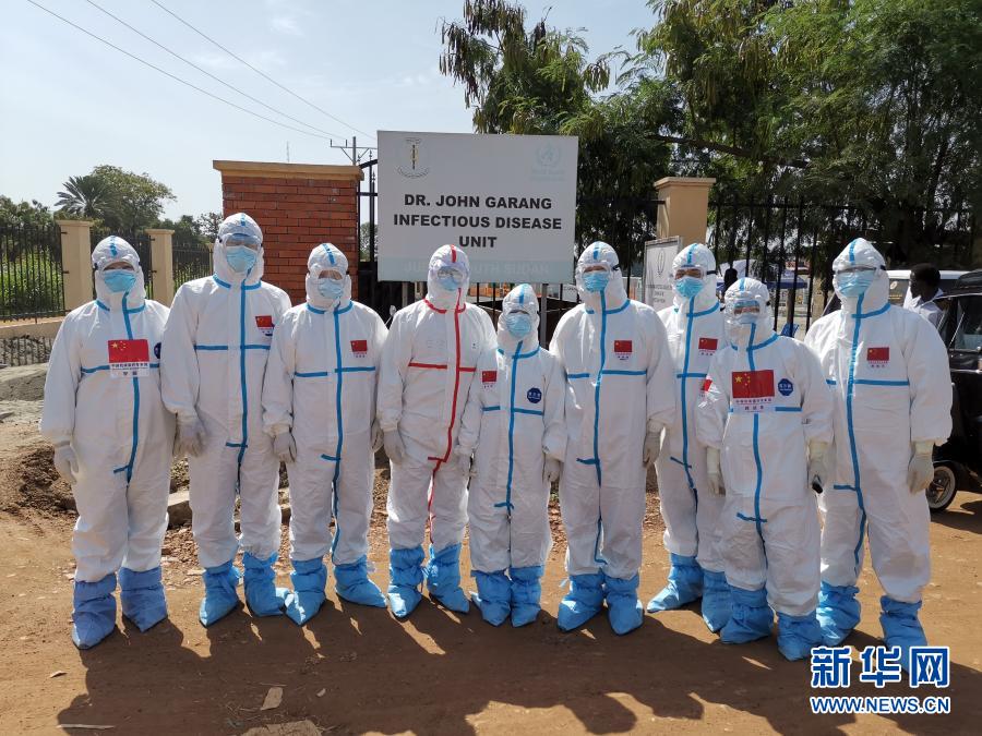 2020年8月21日,中國抗疫醫療專家組成員在南蘇丹首都朱巴的一處新冠肺炎治療機構留影。新華社發(中國駐南蘇丹大使館供圖)