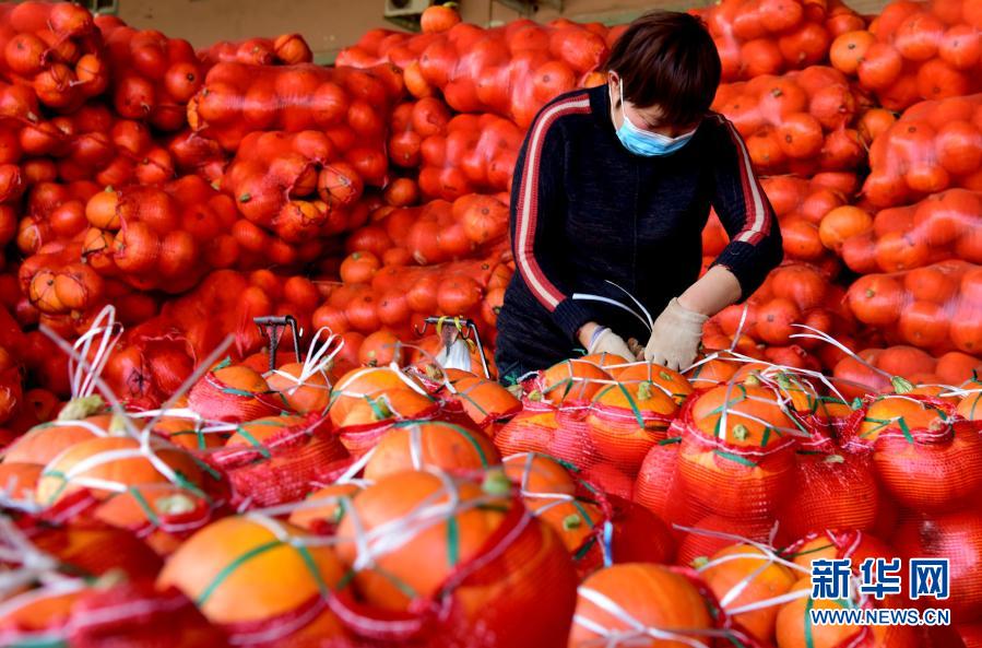 2月5日,在鄭州市中牟縣萬邦國際農(nóng)產(chǎn)品物流城,工作人員在整理蔬菜。新華社記者 朱祥 攝