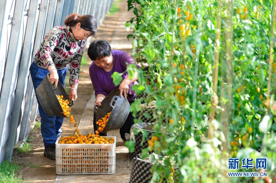 2月2日,在呼和浩特市經(jīng)濟(jì)作物工作站引種試驗示范基地,工作人員收獲越冬茬口感型番茄。新華社發(fā)(王正 攝)
