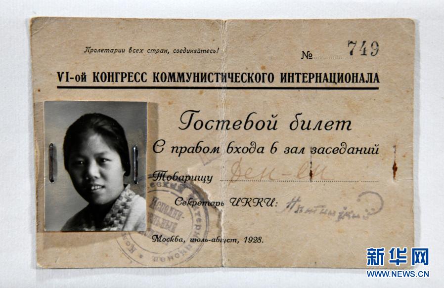 “這是一個(gè)長(zhǎng)方形的紙質(zhì)證件,俄文印刷的,上面印有‘全世界無(wú)產(chǎn)者聯(lián)合起來(lái)’‘共產(chǎn)國(guó)際第六次代表大會(huì)’,用訂書(shū)釘固定了一張鄧穎超同志的黑白照片,加蓋有共產(chǎn)國(guó)際執(zhí)委會(huì)的徽章。”李勤介紹說(shuō),這是1928年鄧穎超參加共產(chǎn)國(guó)際六大的列席證。此行,鄧穎超還有一個(gè)更重要的任務(wù),陪同周恩來(lái)參加黨的第六次全國(guó)代表大會(huì)。