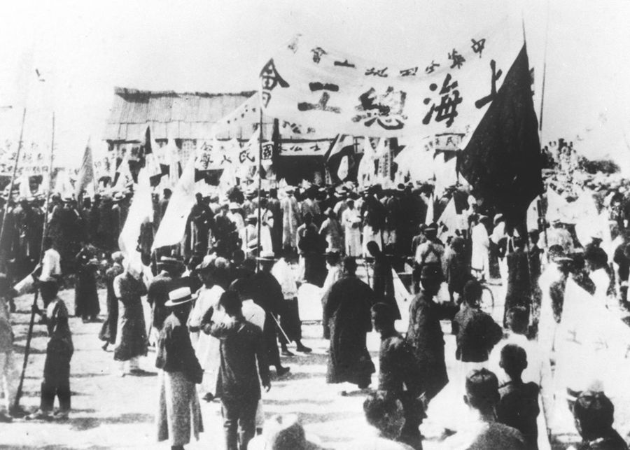 圖為五卅運動爆發時上海總工會的游行隊伍 新華社圖片
