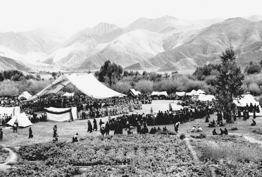 1951年9月,人民解放軍入藏先遣部隊抵達拉薩城郊。西藏地方政府在拉薩河畔搭起了巨大的白色帳篷,設立了十里長亭,隆重熱烈歡迎解放軍入城。 新華社圖片