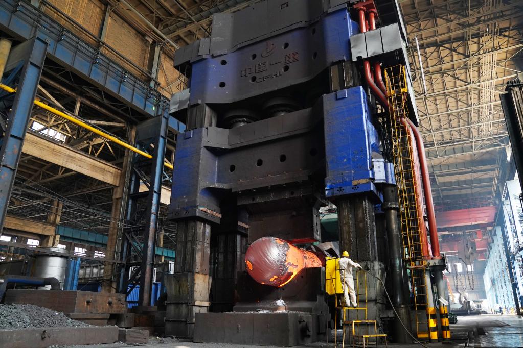 5月初,在中國一重集團(tuán)有限公司鑄鍛鋼事業(yè)部水壓機(jī)鍛造廠,廠長許四海正和工人操作萬噸水壓機(jī),一個紅彤彤的鋼坯在水壓機(jī)錘煉下,慢慢變成了大型工件。