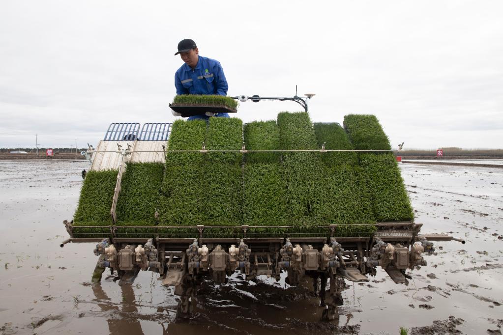 5月18日,在我國“東極”撫遠(yuǎn)市的玖成水稻種植專業(yè)合作社,一臺臺高速插秧機(jī)正在水稻田中作業(yè)。合作社理事長袁勝海說,五年來,合作社逐步發(fā)展壯大,社員由原來的38戶82人發(fā)展到124戶336人,水稻平均畝產(chǎn)從1000斤提高到1100斤左右,還把“玖成鮮米”銷往北京、江蘇等地。