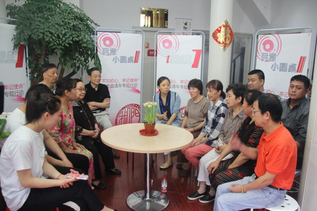 曹琛(中)參加社區(qū)“民情直通車”活動(dòng)。(小營(yíng)巷社區(qū)供圖)