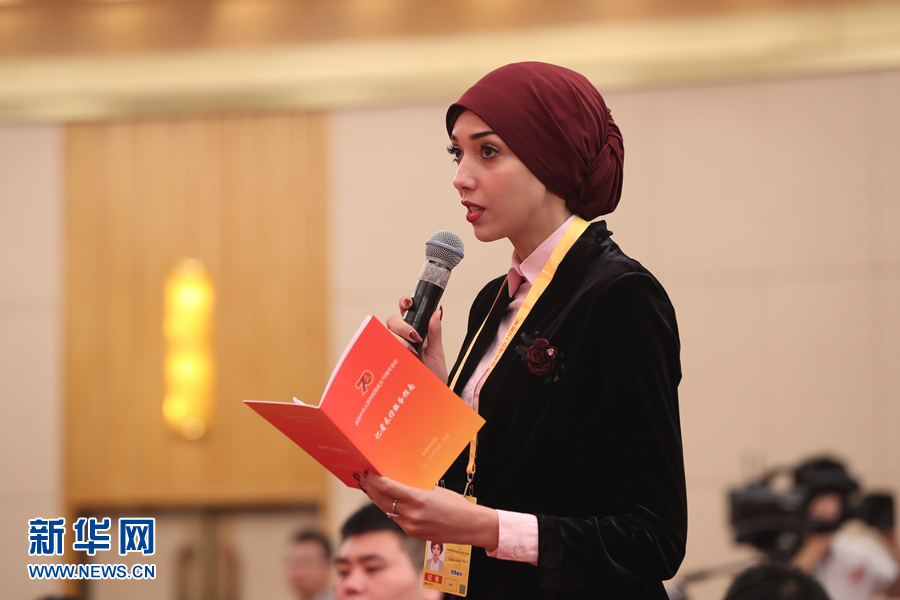 9月24日,慶祝中華人民共和國成立70周年活動新聞中心在北京梅地亞中心二層新聞發布廳舉辦第一場專題集體采訪。圖為境外媒體記者提問。新華網記者 郭小天 攝