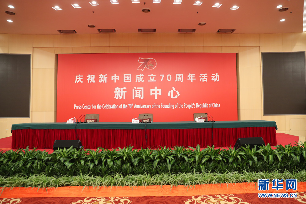 9月27日,慶祝中華人民共和國成立70周年活動新聞中心在梅地亞中心二層新聞發布廳舉辦第三場新聞發布會,中央農村工作領導小組辦公室主任、農業農村部部長韓長賦,國務院扶貧開發領導小組辦公室主任劉永富介紹全面建成小康社會,扎實推進脫貧攻堅和鄉村振興,并回答記者提問。圖為發布廳現場。新華網 陳杰 攝