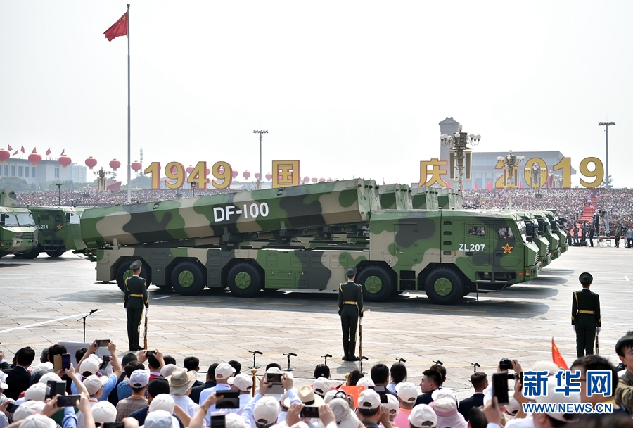 10月1日上午,慶祝中華人民共和國成立70周年大會在北京天安門廣場隆重舉行。這是長劍-100巡航導彈方隊。新華社記者 李鑫 攝