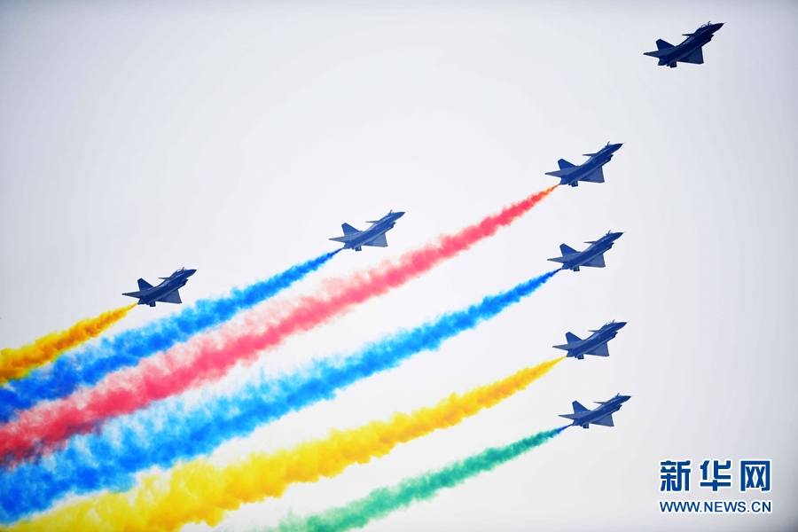 “七道彩煙寓意新中國走過70年輝煌歷程,絢麗繽紛,蒸蒸日上。”空中梯隊指揮部政治工作辦公室主任武祥峰介紹,七道彩煙中,紅色為黨旗、國旗主色調(diào),表示人民軍隊一顆紅心永向黨;藍色為空天主色調(diào),寓意人民空軍奮飛藍天、飛行萬里不迷航;黃色代表炎黃子孫,象征中華民族昂首闊步邁向偉大復(fù)興;綠色代表生機活力,昭示偉大祖國生機盎然。七道彩煙左右對稱排列,寓意中華民族以和為貴、向往和平,昭示中國軍隊崇尚和平、捍衛(wèi)和平的堅強決心。