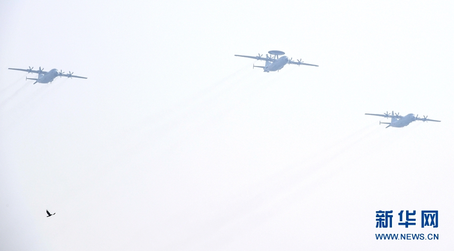 新華社北京10月1日電(黃書波、周正新)空警-500H預(yù)警機(jī)、空警-200H預(yù)警機(jī)、運(yùn)-8反潛巡邏機(jī)、運(yùn)-8技術(shù)偵察機(jī)組成的海上巡邏機(jī)梯隊(duì),1日上午飛過天安門廣場(chǎng)上空,作為海軍新型信息作戰(zhàn)力量的4型特種機(jī)首次集體亮相。