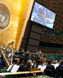 國(guó)東部時(shí)間5月20日下午,紐約曼哈頓,聯(lián)合國(guó)總部大會(huì)廳。一場(chǎng)中美軍樂團(tuán)聯(lián)合音樂會(huì)隆重舉行。首次走進(jìn)聯(lián)合國(guó)的中國(guó)人民解放軍軍樂團(tuán),演奏了《歌唱祖國(guó)》為音樂會(huì)“壓軸”。激昂的樂曲在這里回蕩,難忘的歷史在這里流淌…… 詳細(xì)內(nèi)容>>