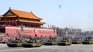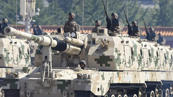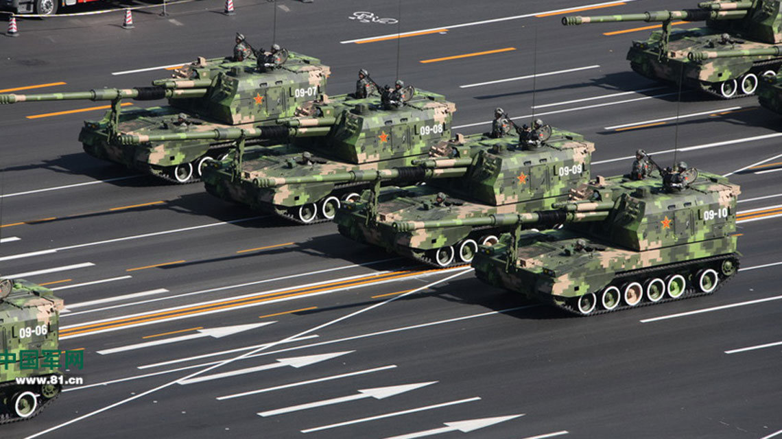 履帶自行火炮方隊(duì)通過(guò)天安門(mén)廣場(chǎng)