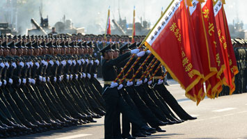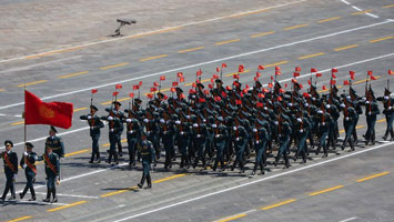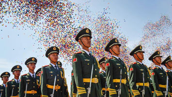 10個(gè)英模部隊(duì)方隊(duì)接受檢閱