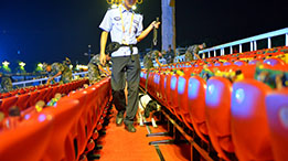 - 在70響禮炮聲中,升旗儀式舉行,全場(chǎng)高唱國(guó)歌