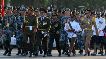 這是我國(guó)首次邀請(qǐng)外軍參加閱兵。白俄羅斯、古巴、埃及、哈薩克斯坦、吉爾吉斯斯坦、墨西哥、蒙古國(guó)、巴基斯坦、塞爾維亞、塔吉克斯坦、俄羅斯等11國(guó)派方隊(duì)參閱,每個(gè)方隊(duì)參閱人數(shù)為75人左右。阿富汗、柬埔寨、斐濟(jì)、老撾、瓦努阿圖、委內(nèi)瑞拉等6國(guó)派代表隊(duì)參閱,每個(gè)代表隊(duì)參閱人數(shù)為7人左右。