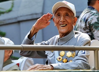 - 抗戰(zhàn)老同志乘車(chē)方隊(duì):國(guó)共兩黨抗戰(zhàn)老兵共同參閱