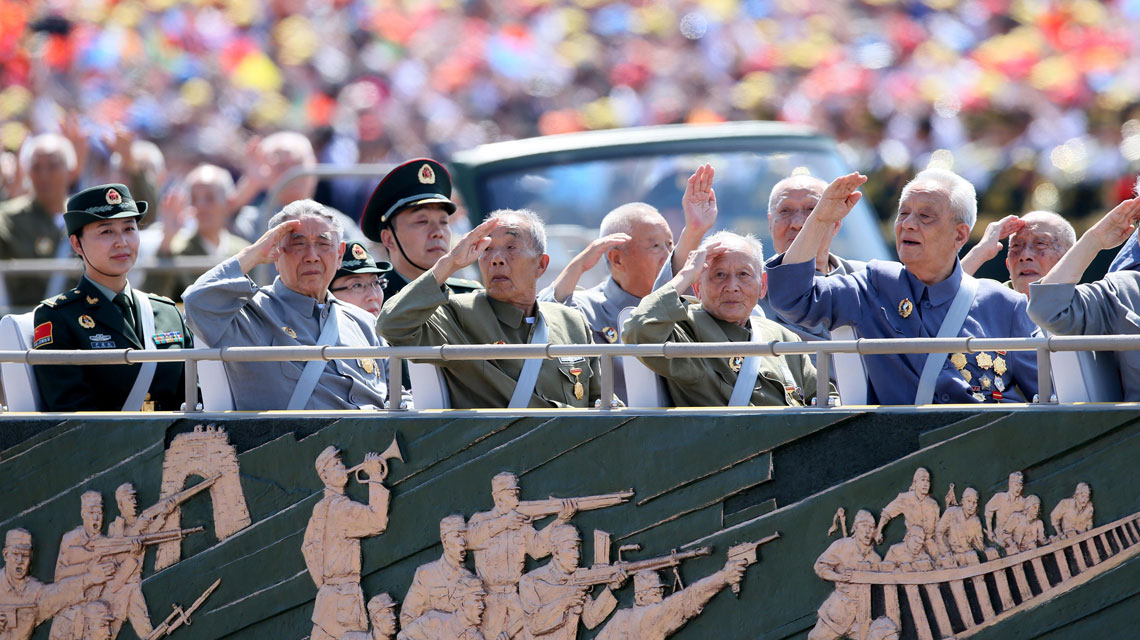 - 習(xí)近平代表中共中央、全國(guó)人大、國(guó)務(wù)院、全國(guó)政協(xié)、中央軍委,向抗戰(zhàn)老戰(zhàn)士、老同志、愛(ài)國(guó)人士和抗日將領(lǐng)等致敬
