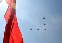 - 空中護(hù)旗方隊(duì)率先飛過(guò)天安門(mén)上空