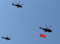 - 70架直升機(jī)大機(jī)群密集編隊(duì)飛過(guò)天安門(mén)上空