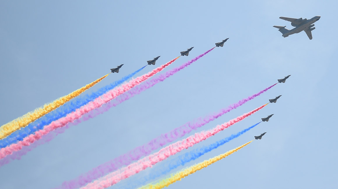 我國(guó)閱兵史上規(guī)模最為龐大的空中梯隊(duì)臨空接受檢閱