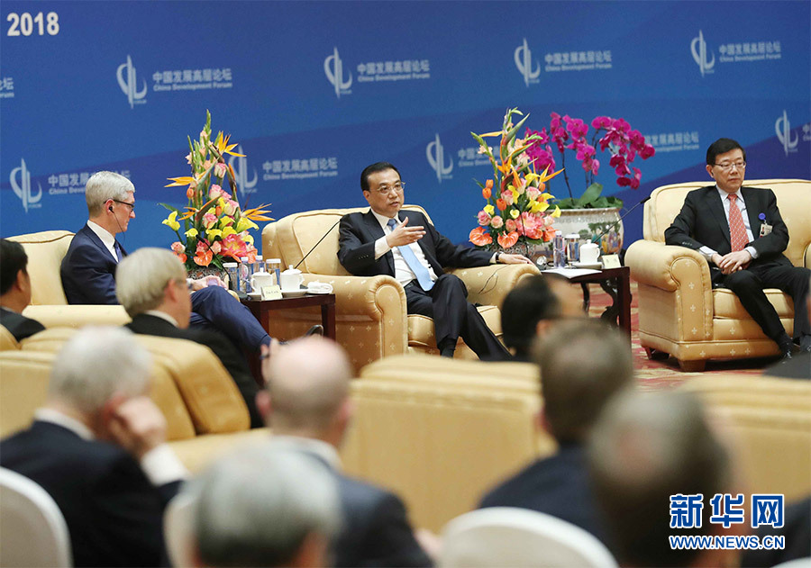 3月26日,國務(wù)院總理李克強在北京會見出席中國發(fā)展高層論壇2018年年會的外方代表并同他們座談。 新華社記者 劉衛(wèi)兵 攝