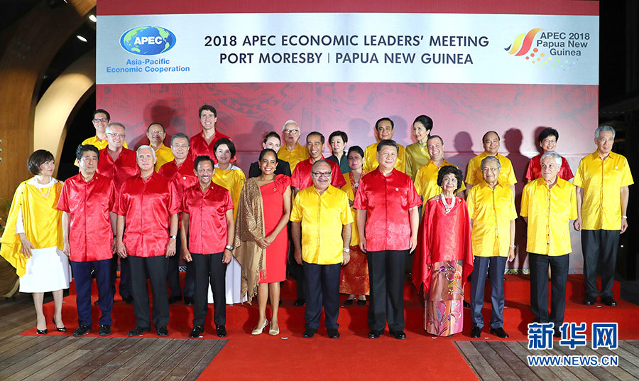 11月17日,國家主席習近平在莫爾茲比港出席巴布亞新幾內亞總理奧尼爾和夫人為出席亞太經合組織第二十六次領導人非正式會議的各成員經濟體領導人、代表及配偶舉行的歡迎晚宴。這是晚宴前集體合影。 新華社記者 謝環(huán)馳 攝