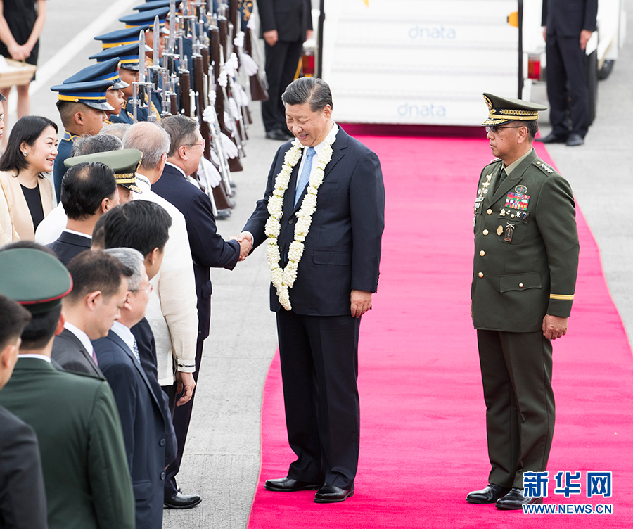 11月20日,國家主席習(xí)近平抵達(dá)馬尼拉,開始對菲律賓共和國進(jìn)行國事訪問。這是習(xí)近平在機(jī)場受到菲律賓政府高級官員熱情迎接。 新華社記者 黃敬文 攝
