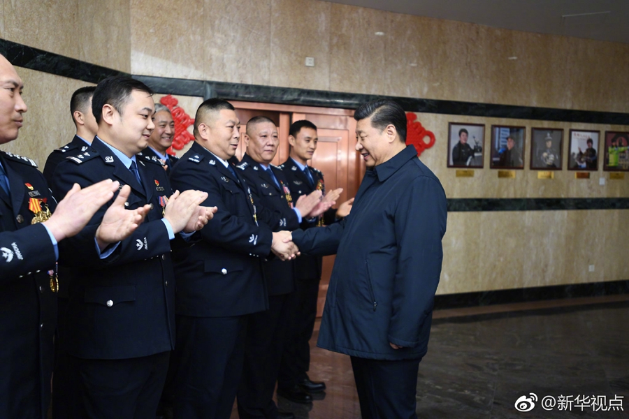 中華民族傳統(tǒng)節(jié)日農(nóng)歷春節(jié)來臨之際,習(xí)近平總書記在北京看望慰問基層干部群眾,向全國各族人民致以美好的新春祝福。2月1日上午,習(xí)近平首先來到北京市公安局考察調(diào)研,看望公安干警,并視頻連線一線執(zhí)勤民警。(記者張曉松、謝環(huán)馳) ????
