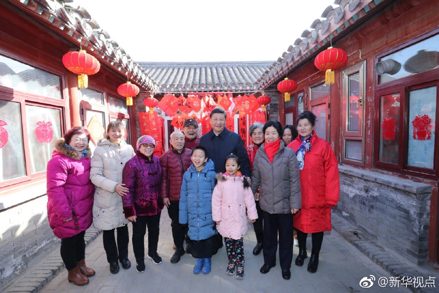 2月1日上午,習(xí)近平來到前門東區(qū),沿草廠四條胡同步行察看街巷風(fēng)貌,聽取區(qū)域規(guī)劃建設(shè)、舊城保護(hù)整治、人居環(huán)境改善等情況介紹,先后走進(jìn)兩個四合院看望,同這里的居民一起包餃子、炸饹馇、貼“福”字、聊家常,仔細(xì)詢問住房環(huán)境有沒有改善、年貨備齊沒有、生活還有什么困難,祝他們生活幸福、新春快樂。四合院里笑語歡聲,習(xí)近平對他們說,中國共產(chǎn)黨的追求就是讓老百姓生活越來越好。(記者張曉松、鞠鵬)