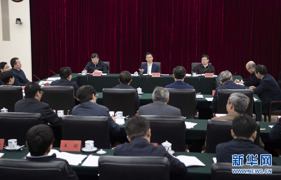 3月22日,中共中央政治局常委、國務(wù)院副總理韓正到生態(tài)環(huán)境部調(diào)研并主持召開座談會(huì)。 新華社記者 李濤 攝