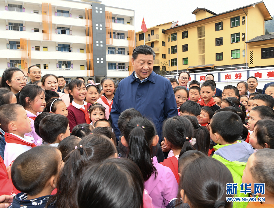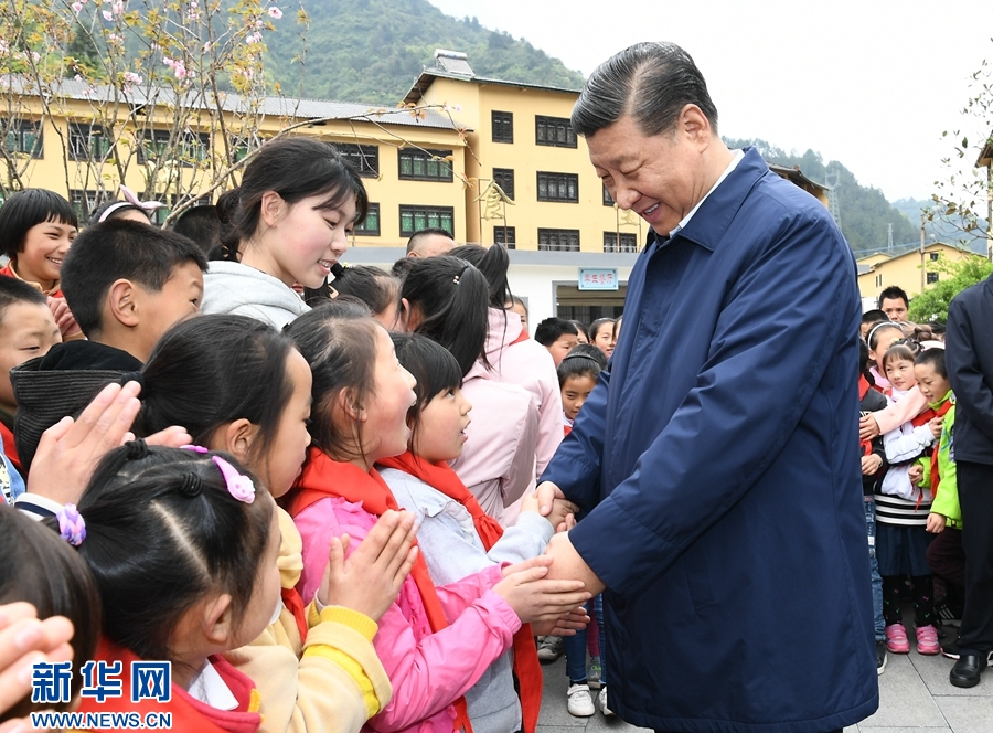習近平首先來到中益鄉小學。學校操場上,小學生們正在開展課外文體活動。看到總書記來了,學生們圍攏過來,紛紛問習爺爺好,總書記高興地同大家交談,詢問他們學習和生活情況。中益鄉地處大山深山之中,群眾居住比較分散,孩子上學是個難題。習近平指出,“兩不愁三保障”,很重要的一條就是義務教育要有保障。再苦不能苦孩子,再窮不能窮教育。要保證貧困山區的孩子上學受教育,有一個幸??鞓返耐?。習近平走進師生食堂,仔細察看餐廳、后廚,了解貧困學生餐費補貼和食品安全衛生情況。習近平囑咐學校和老師既要當好老師,又要當好臨時家長,把學生教好、管好。要把安全放在第一位,確保學生在學校學、住、吃都安全,讓家長們放心。他希望老師們扎根山區,獻身鄉村教育事業,為群眾脫貧貢獻一份力量。
