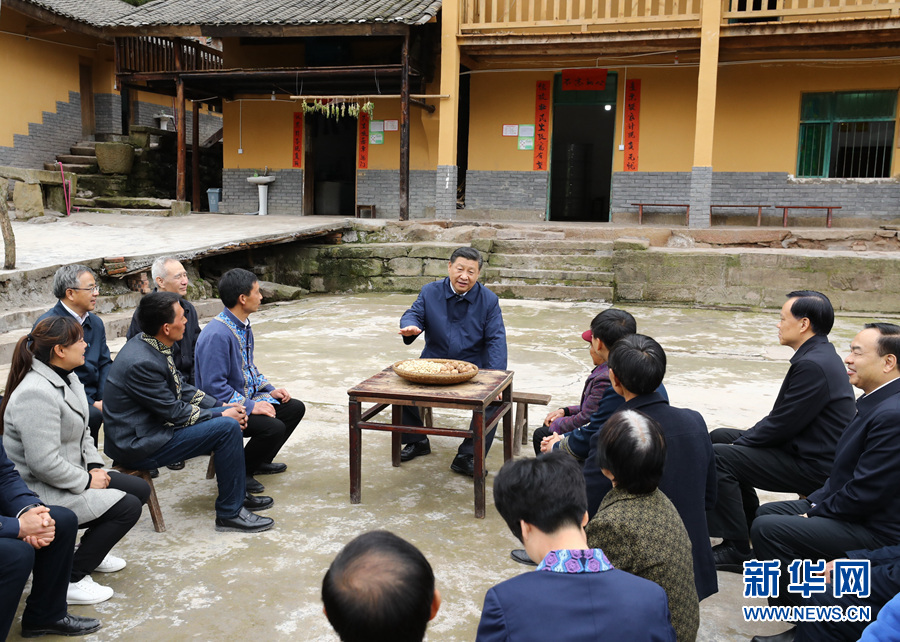 這是4月15日下午,習近平在石柱土家族自治縣中益鄉華溪村看望貧困戶譚登周一家。 新華社記者 劉彬 攝